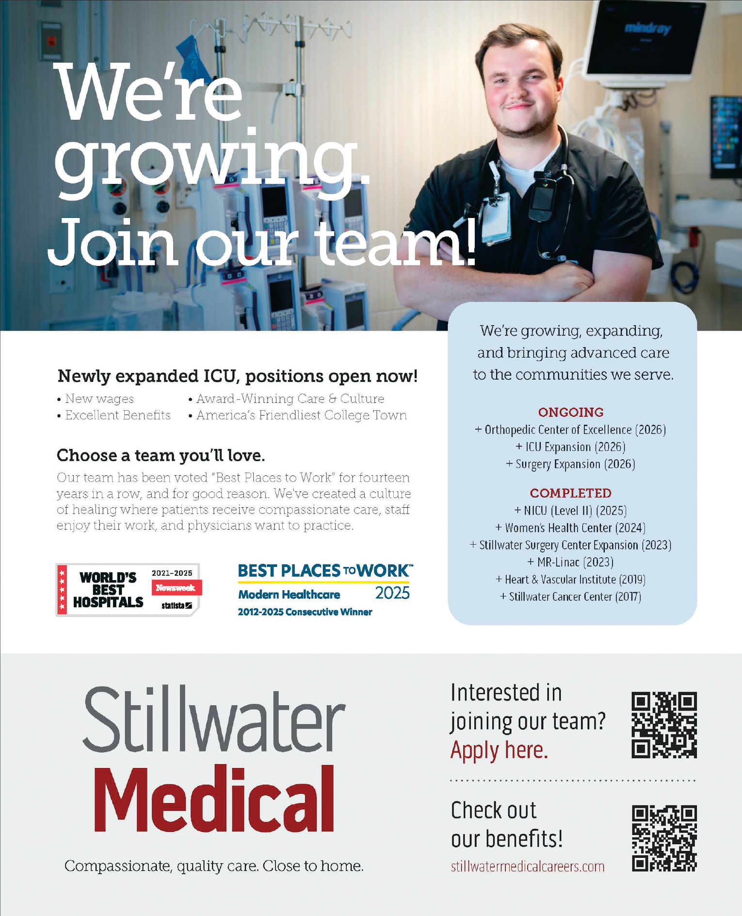 Stillwater Medical has been named one of the Best Places to Work by Modern Healthcare, a news organization that identifies and recognizes outstanding employers in the healthcare industry nationwide. They are the only organization in the state to receive this distinction for 14 years in a row.