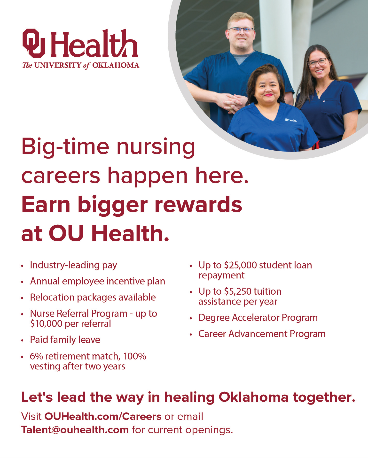 At OU Health, we’re never done, never outdone, and initiatives like DAP ensure breakthroughs reach every corner of Oklahoma. We are changing lives through discovery and healing, and we’re building the next generation of nursing leaders to ensure that OU Health continues to be the beacon of hope and healing for Oklahoma and beyond.