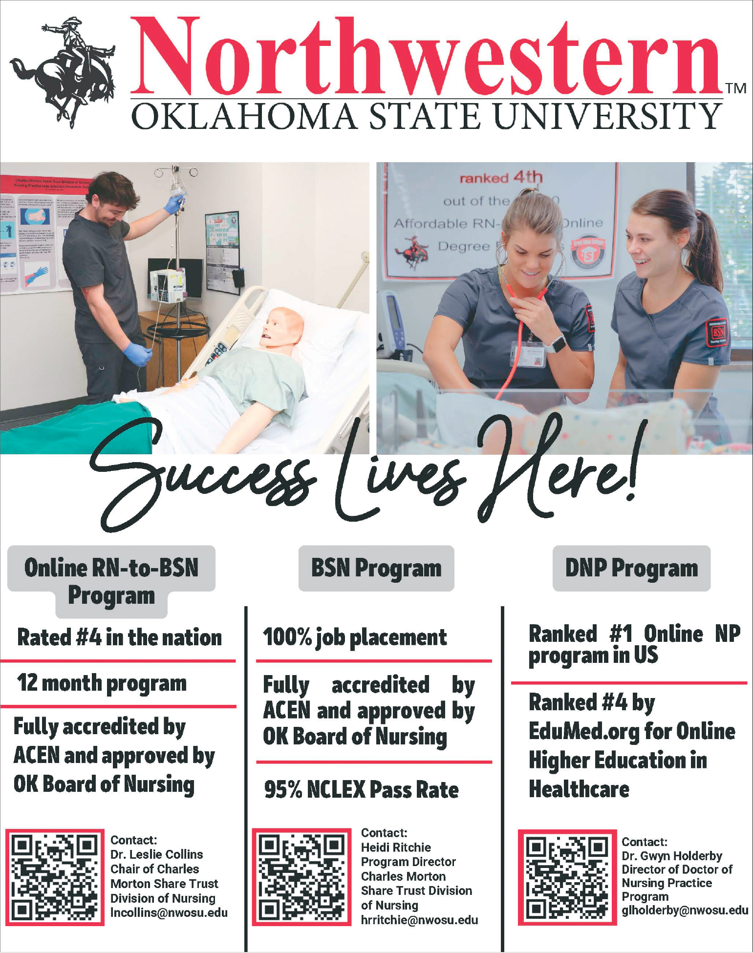 From there, she took a job in her alma mater’s nursing program skills lab. Thirteen years later, she’s chair of Northwestern Oklahoma State’s Charles Morton Share Trust Division of Nursing.